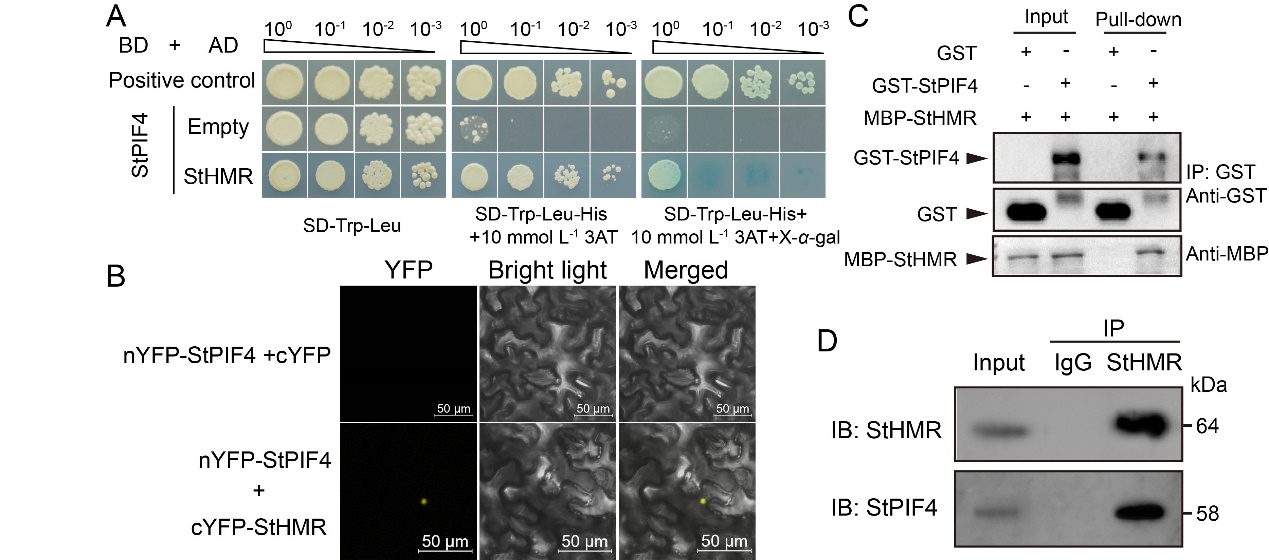 图5 在高温条件下,StHMR与StPIF4协同促进StYUC8的转录激活