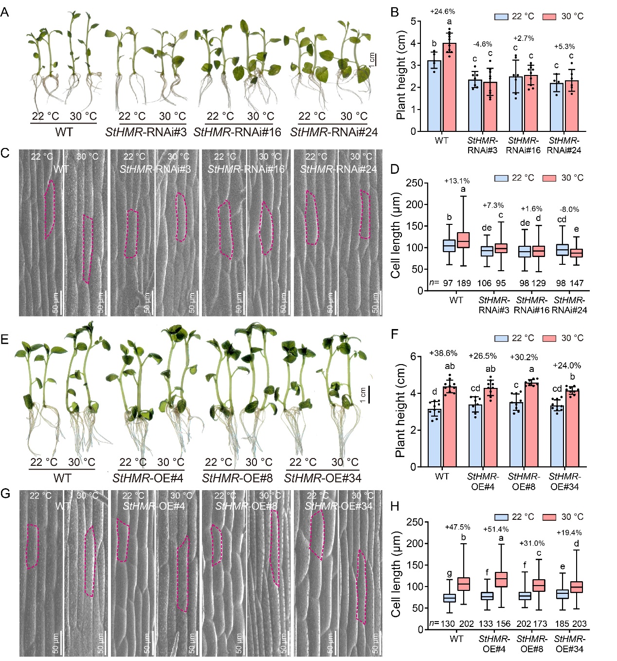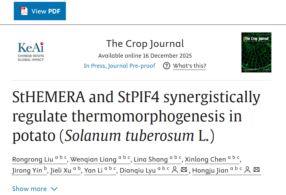 马铃薯(Solanum tuberosum L.)作为全球第三大主粮作物,在150多个国家广泛种植,年总产量约3.83亿吨,对保障全球粮食安全具有重要战略意义。作为喜凉作物,马铃薯生长发育对高温极为敏感,高温胁迫会严重抑制其生长、发育及结薯过程,显著降低产量。适度高温可诱导植株的热形态建成响应,但这一过程在马铃薯中的分子调控机制尚未明确。