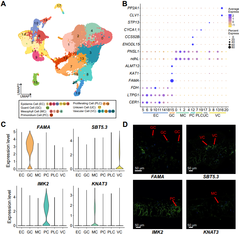 图2. 马铃薯叶片细胞类型的鉴定