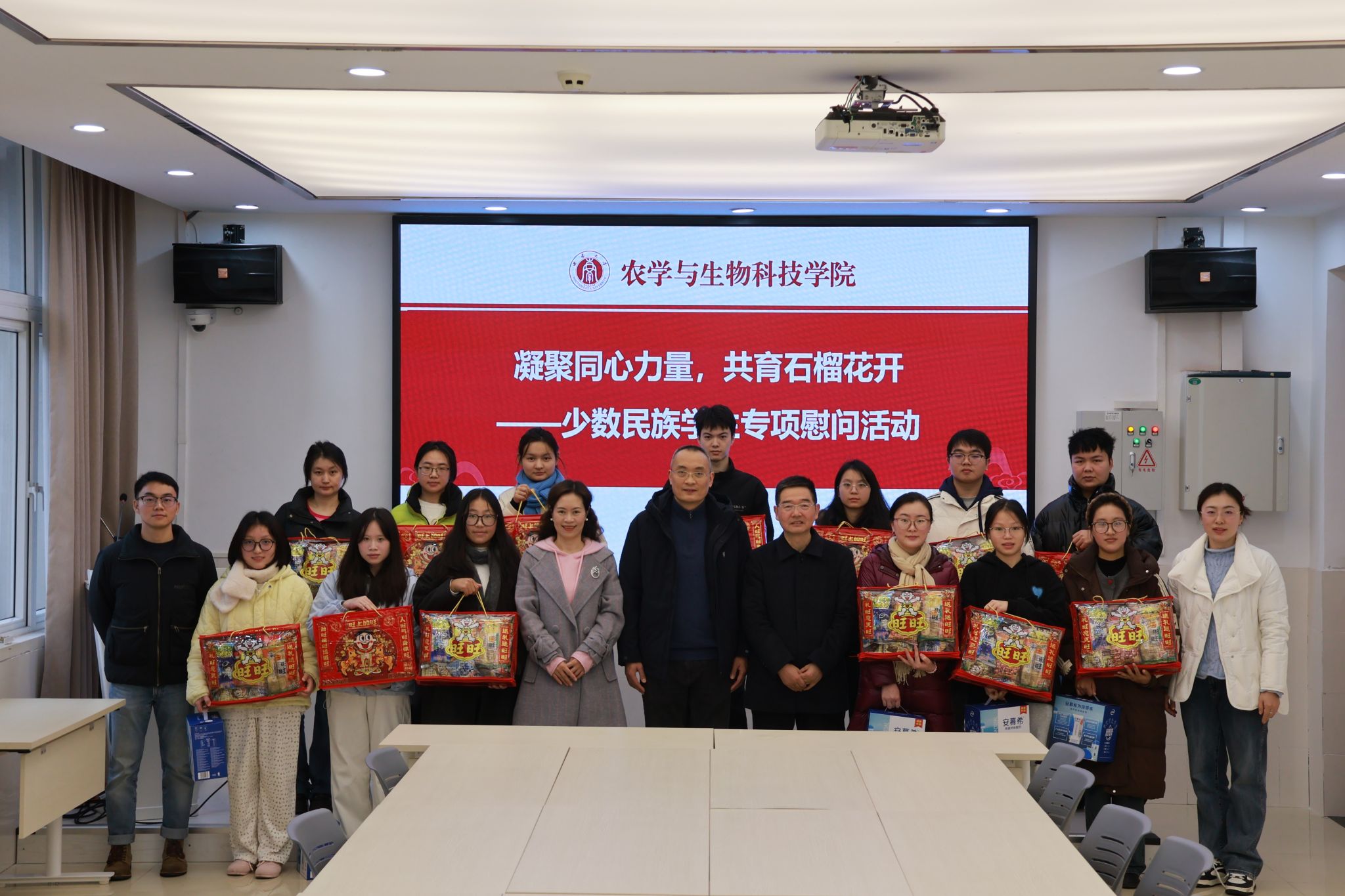 活动尾声,学院领导代表学院向同学们送上元旦祝福与精心准备的慰问礼品。同学们纷纷表示,将牢记学院的殷切期望,勤奋学习、砥砺前行,不断提升综合素质,为促进民族团结、服务社会发展贡献青春力量。